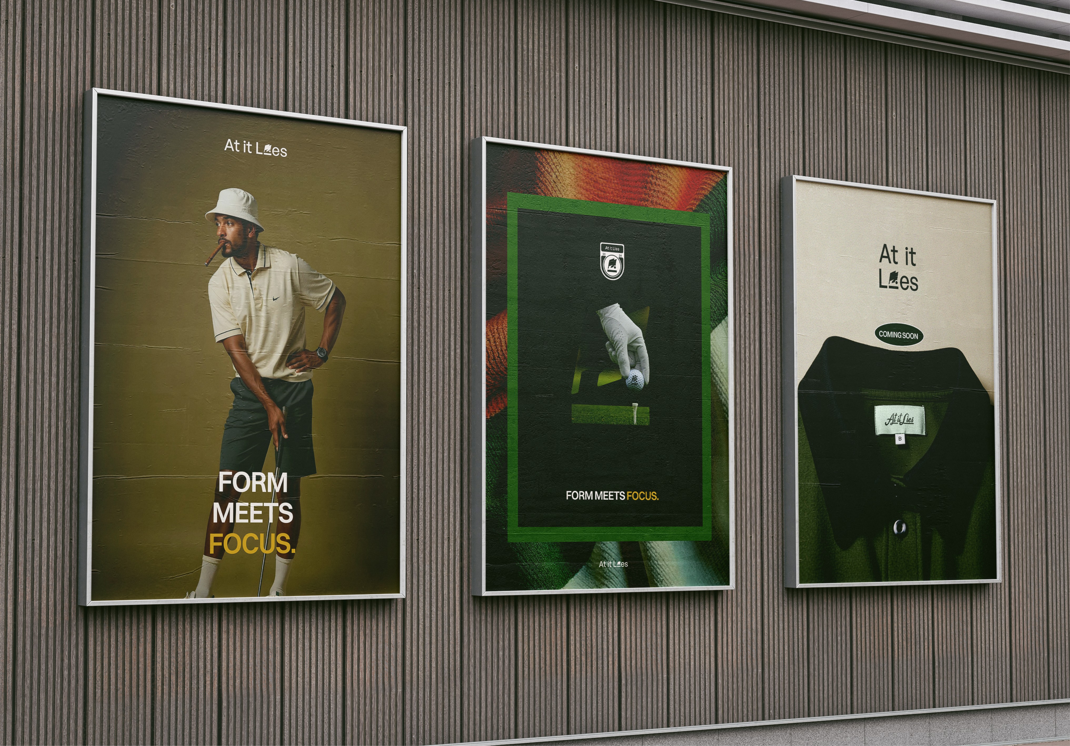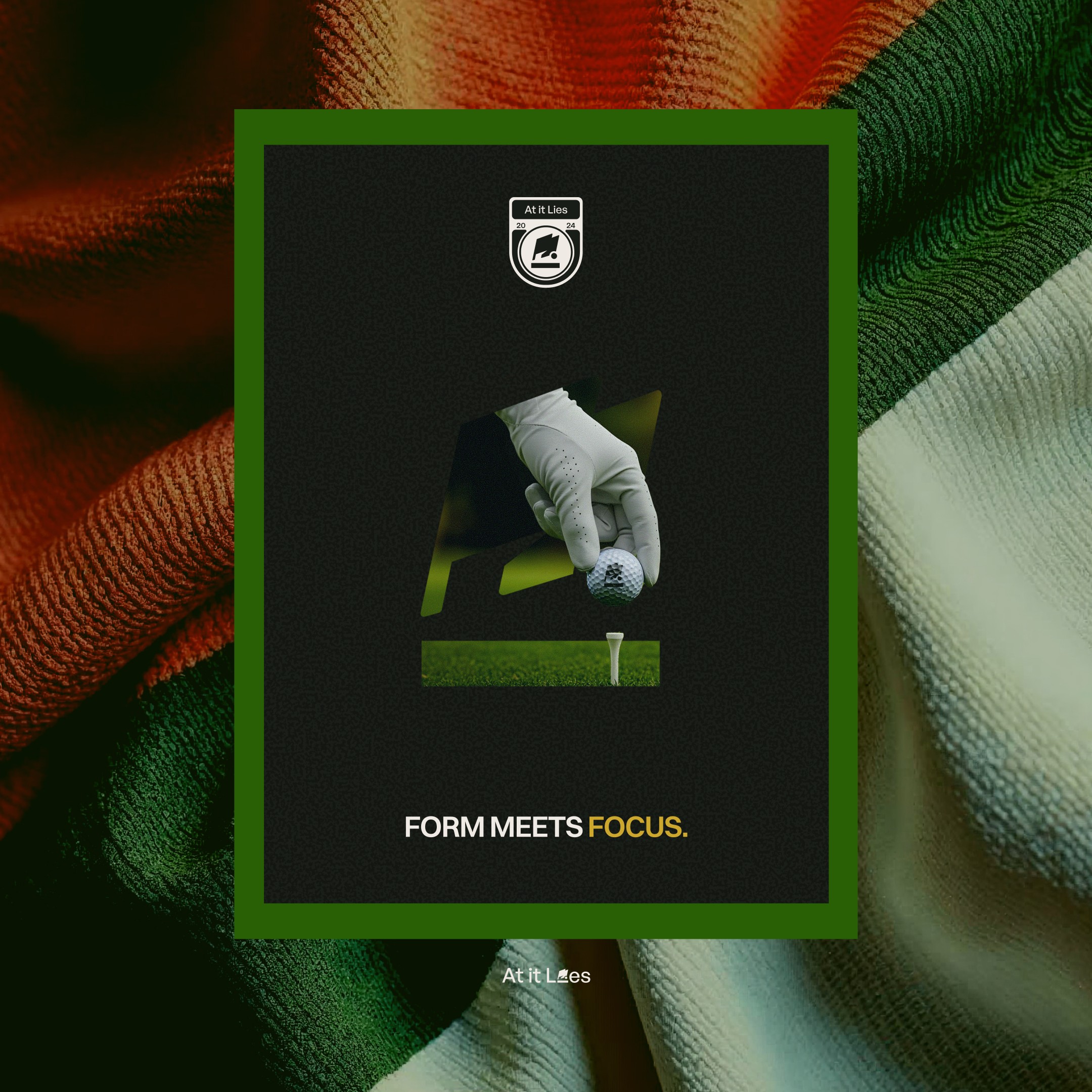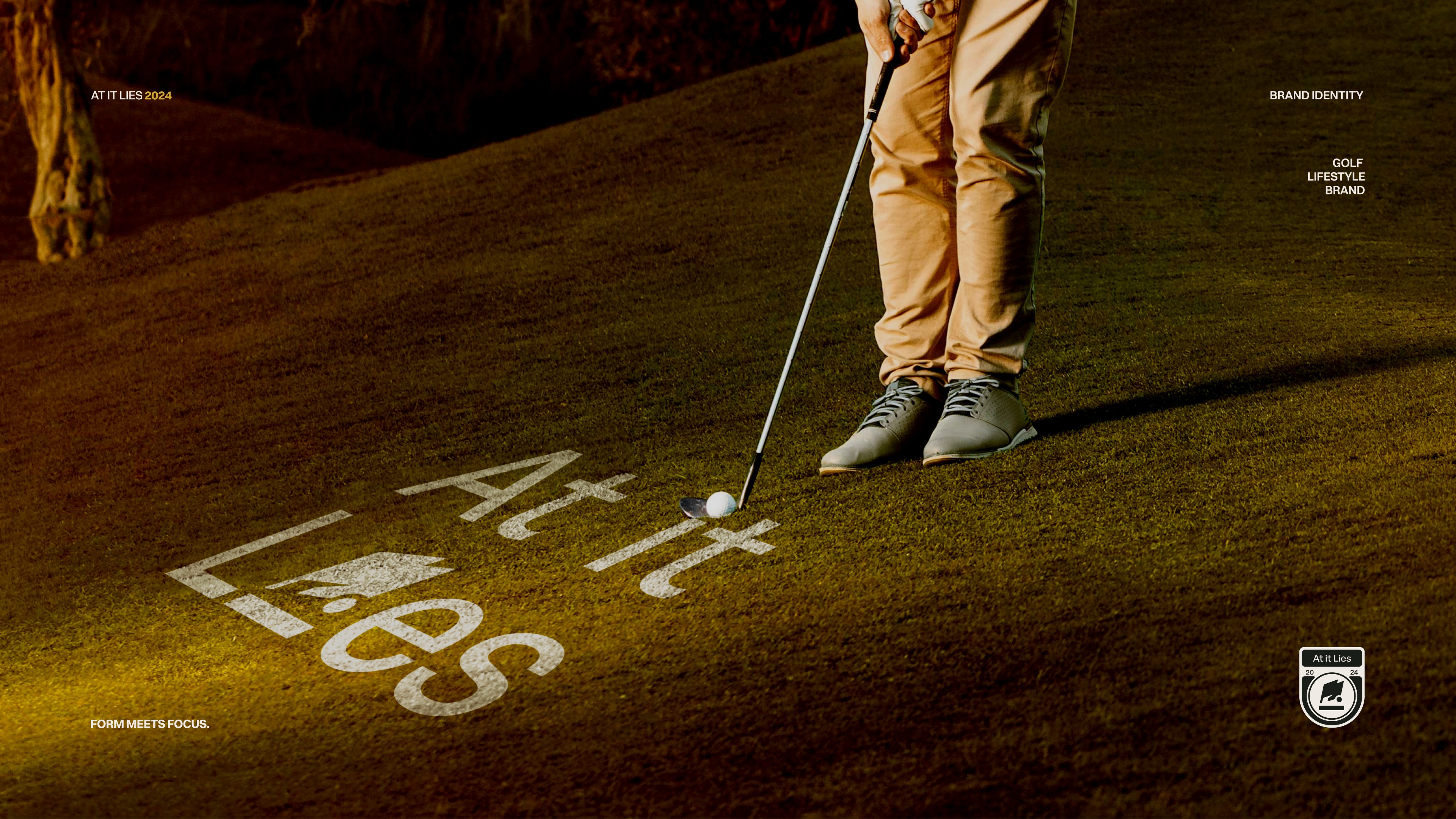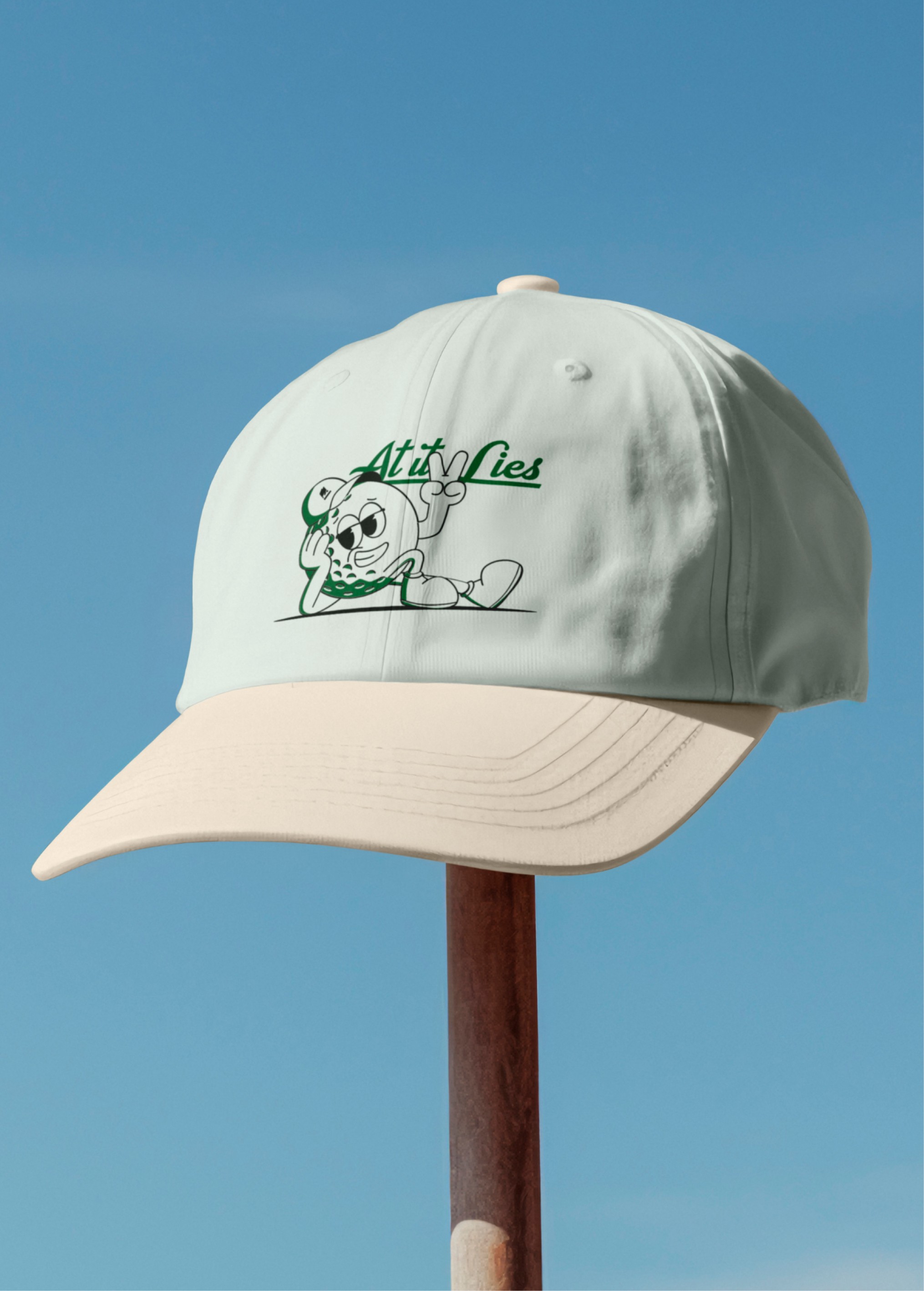 Question: what if a brand could have multiple identifiers that all work as one? Most golf brands stick to a single logo with variations, but golf culture has always celebrated variety; the equipment, the courses, the styles. At It Lies is a golf-lifestyle brand offering apparel for people who want golf to feel accessible, not elite. The challenge was positioning the brand as premium without being snobby, approachable without being streetwear. The brand needed to say "peace," "zen," "focus," and "mindfulness"; golf as a head; clearing ritual where the world pauses.