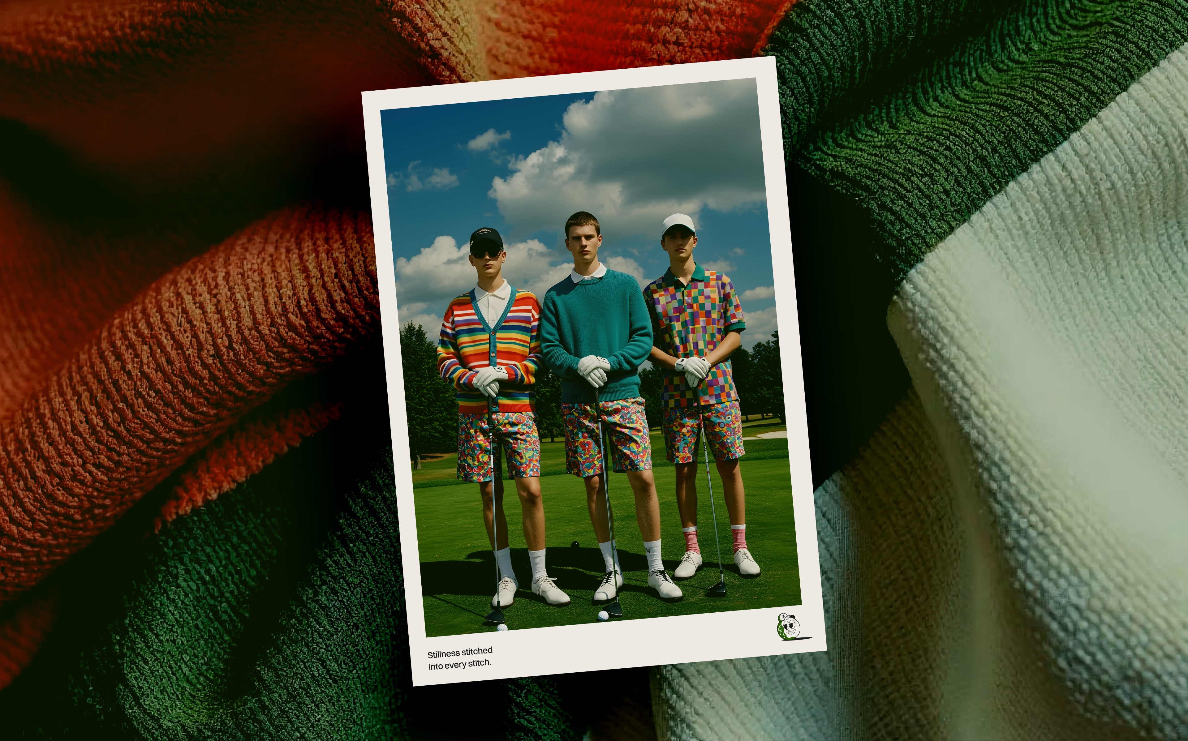 The identity system has multiple identifiers: a logomark (golf flag on turf), wordmark, badge, and mascots; all working interchangeably depending on context. The flag logomark anchors everything, appearing across every expression to maintain consistency. The system operates on bold minimalism: large elements fill space while keeping everything else clean and clear. A wordmark, designed with classic golf typography, is reserved exclusively for apparel. Every identifier connects back to one idea: the brand name itself, "lies." The system allows the brand to show up differently without losing coherence; multiple expressions, one identity.