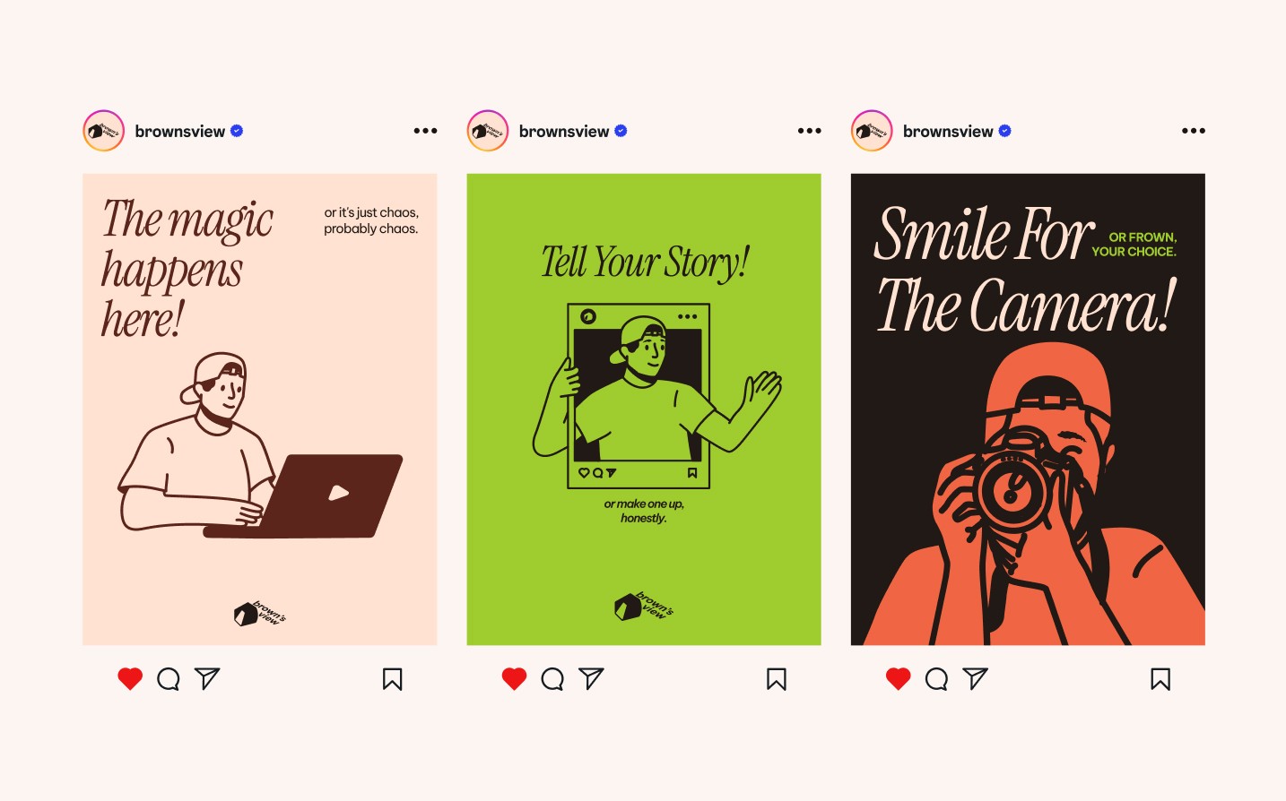 Photographers who also edit, create content, and shoot video face an identity problem. Most pick one discipline to lead with and bury the rest. Brownsview does photography, video, editing, and content creation—all at once. The brief required merging these fields into one cohesive identity that feels professional while keeping the creator's edge. The visual system needed to stay minimal so the actual work—the models, the clients, the outputs—could take center stage. Brown tells stories from a specific point of view, and that perspective needed to drive the entire identity.