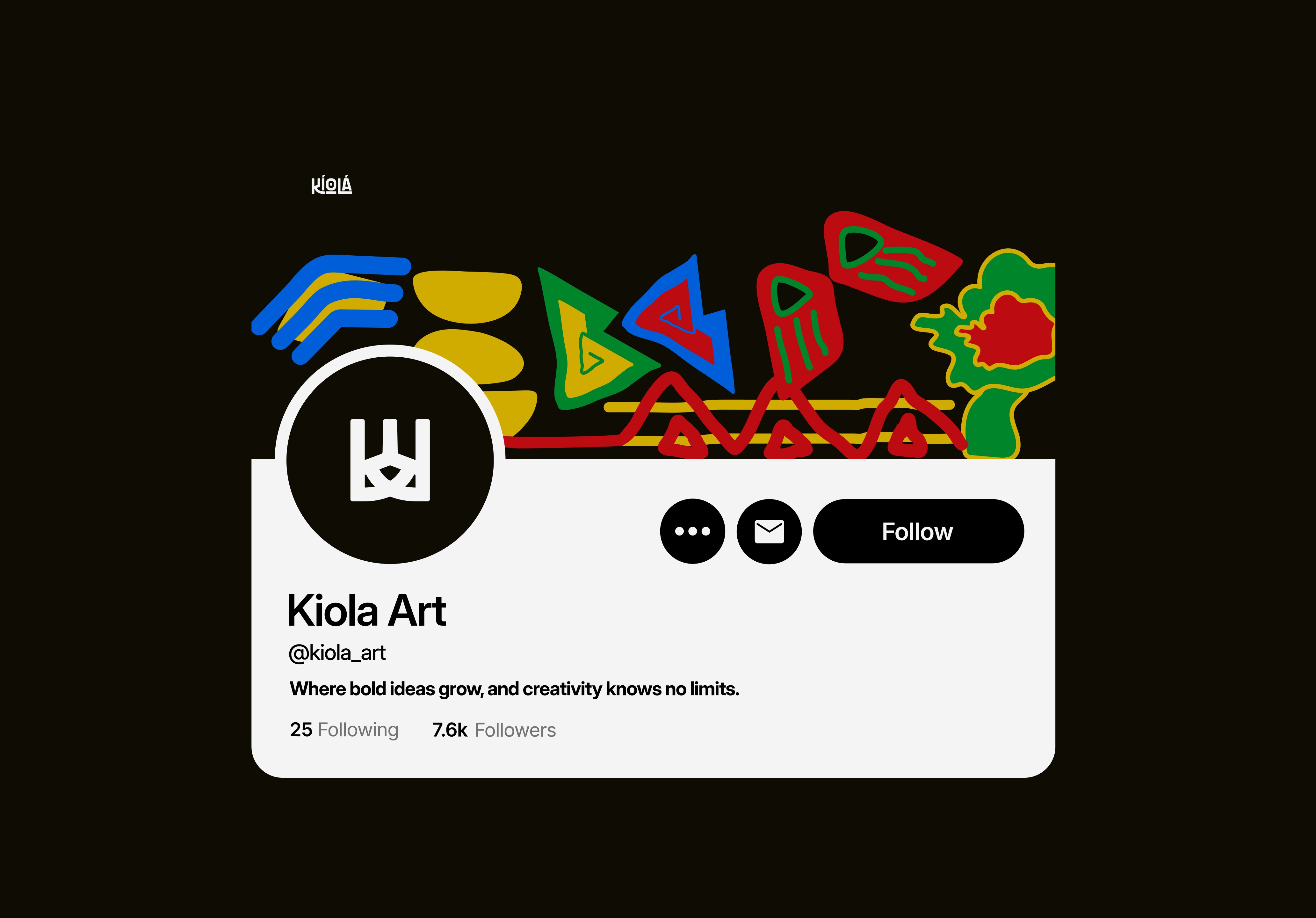 Supporting young artists means getting out of their way. Kiola champions young Nigerian artists, and the brief required balancing modern Nigerian youth energy with traditional Nigerian aesthetics. The question then arises: how do you honor cultural heritage and contemporary expression simultaneously without either side overwhelming the other? The studio needed an identity that says "safe space," "cultural authenticity," and "modern platform" without drowning out what actually matters; the work these artists create. The minimalism had to be intentional, not empty.